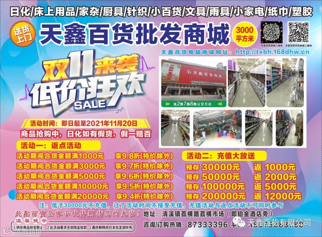 好消息:天鑫百货天鑫副食双十一特惠大酬宾.低价 折扣 返点 红包活动开始了......!