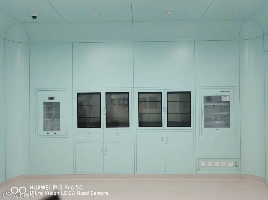 可以选用单面或双面快装电解板,中间采用铝合金骨架,内衬填充物可以选择岩棉板或者防火铝蜂窝。快装电解板防火可以达到A1不燃级,确保手术室的安全性,同时具备抗菌,防静电,耐刮耐撞击等多项合格检测。