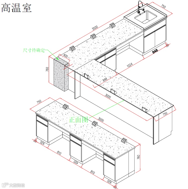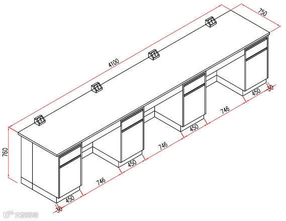 以上属于工业类生产单位的实验室台类设计,采用电解钢板作为柜体材质,台面使用加厚实芯理化板,具备的承重能力可以满足日常工作要求。