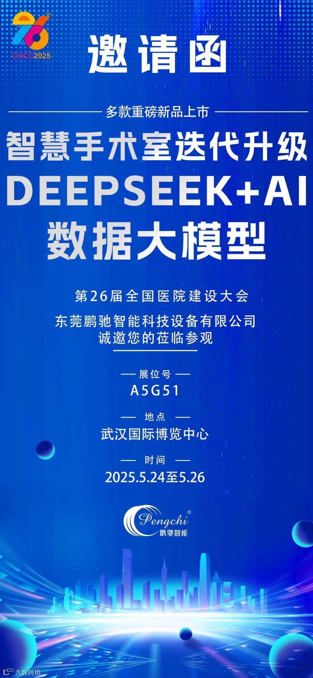 东莞鹏驰智能设备科技有限公司作为医院建设领域优秀供应商,诚邀您共赴第26届全国医院建设大会,以创新智能产品赋能医院新基建!作为医疗智能化领域的先锋企业,鹏驰智能将携多款医疗新品亮相第26届全国医院建设大会: