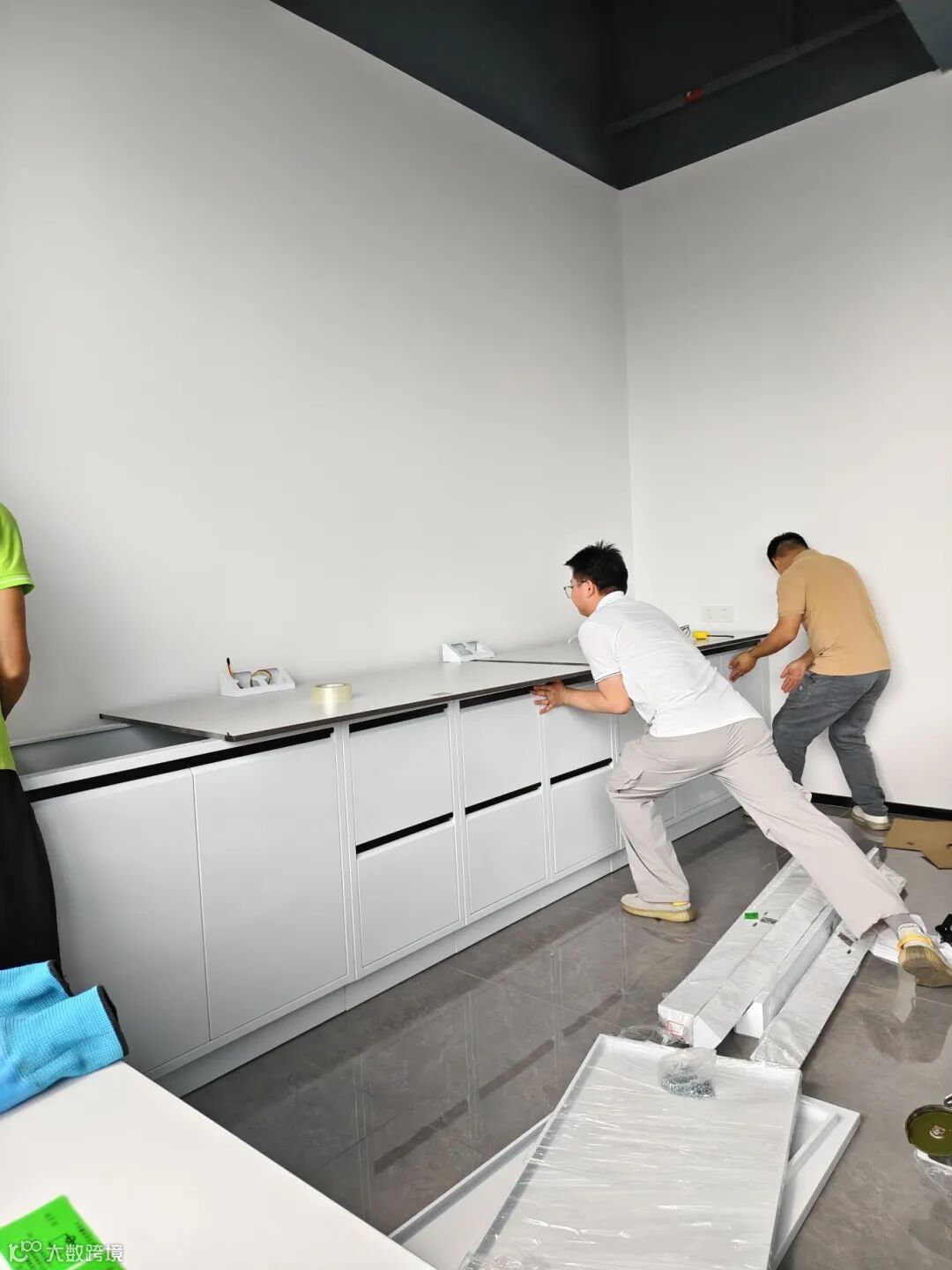 5. 左右两侧边台设为柜门与抽屉结合,满足多种物料分类与大容量储物需求
