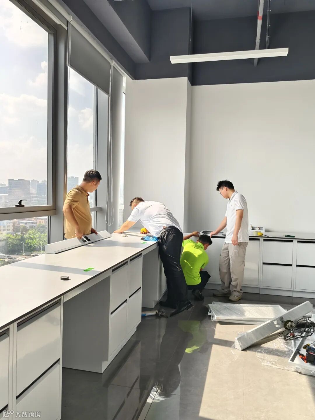 分享最近一个实验室案例,通过三组全钢边台来解决空间布置设计的问题!