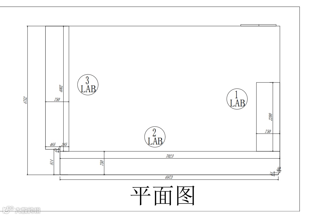 根据客户现场平面图和客户的需求,现场角落有承重柱,又要使得实验台相互合并,看似一个整体。