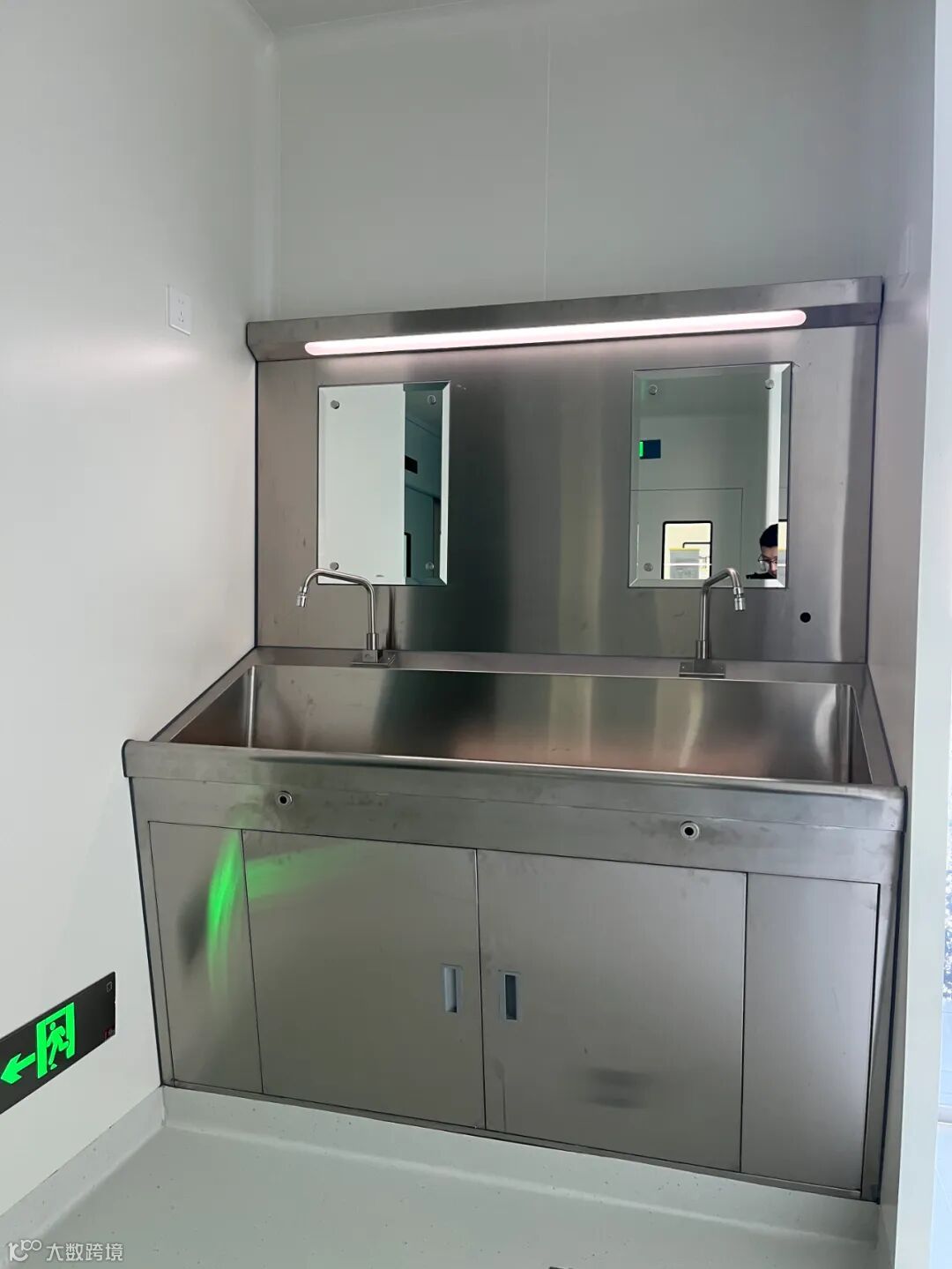 非手动开关:为了防止手碰龙头而沾染细菌,刷手池应采用非手动式开关,如红外感应、脚踏、膝碰等出水方式。