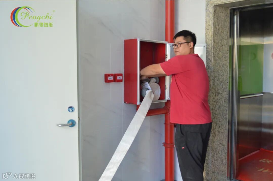 此后,鹏驰智能职工们轮番上前进行灭火和防火水枪实操练习。