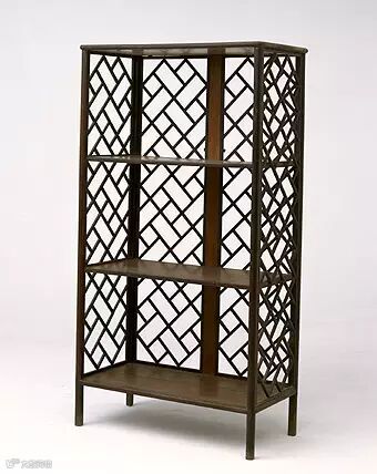 此架格的棂格纹样系从“风车式”演化而出,有通透空灵之美,三面镶棂格虽然繁多,但整体显得明快大气,美观秀丽。