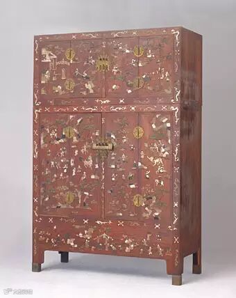此柜之婴戏画面生动,色调丰富,镶嵌工艺精巧,在现存明代漆家具中罕见。