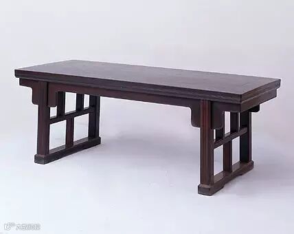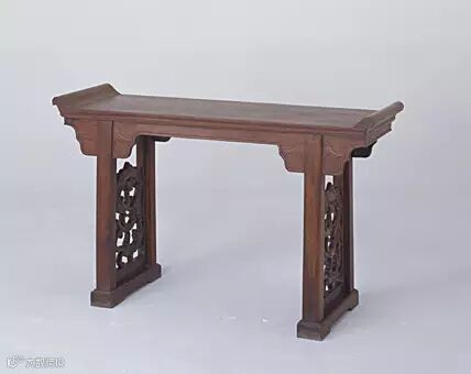 此桌造型庄重大方,纹饰简练,色调自然,具有明代家具的特点。