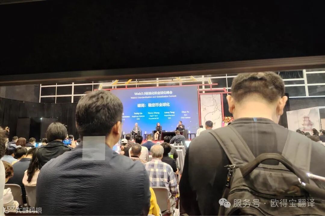 面对区块链技术术语密集、演讲节奏紧凑的挑战,欧得宝同传译员以深厚的行业积累与灵活应变能力,实现技术概念零损耗传递,确保全球嘉宾在“标准化协作”“生态共建”等议题中无缝沟通,获主办方与参会者一致赞誉。