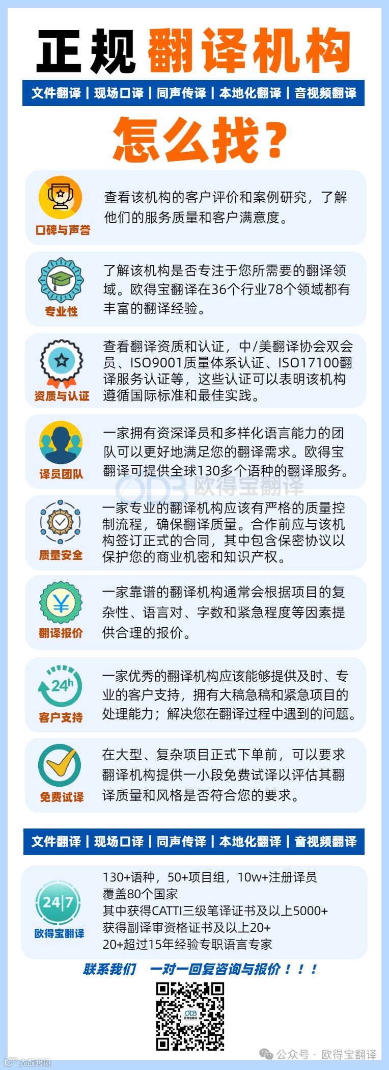 欧得宝翻译是翻译服务、翻译教育、语言数据库开发、语言类计算机软件开发和外语教育产品研发的专业服务公司,以翻译为龙头并致力于为客户提供多元化服务。