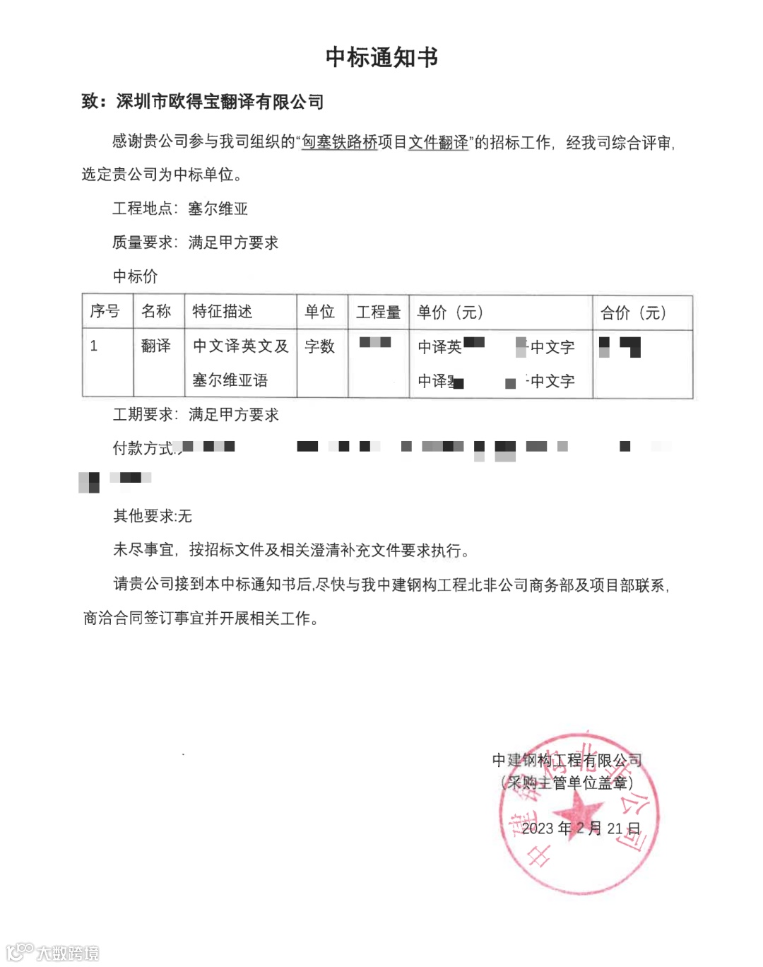 喜报!欧得宝中标匈塞铁路桥塞尔维亚指定文件翻译项目!