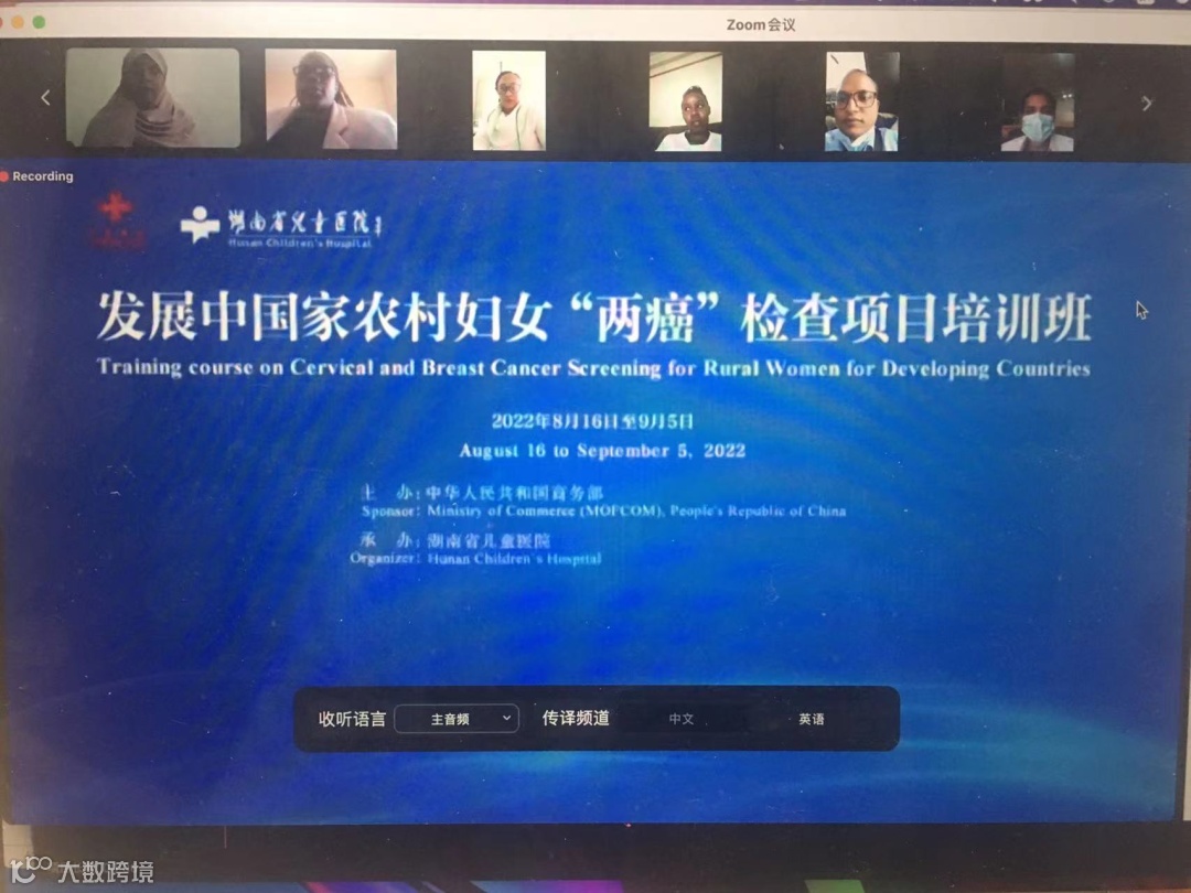 近日,湖南省儿童医院主办的“发展中国家农村妇女“两癌”检查项目培训班在湖南省儿童医院举办,我司提供了中英双语线上同传服务。