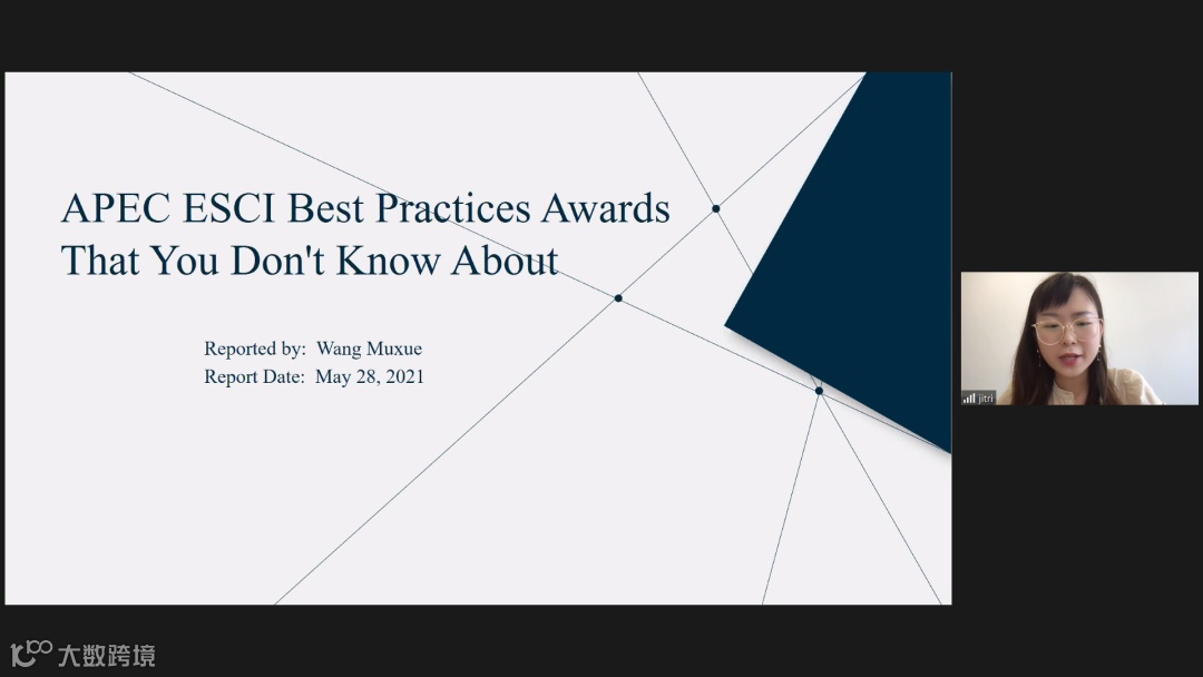 王慕雪围绕“APEC ESCI最佳实践奖”进行了汇报。