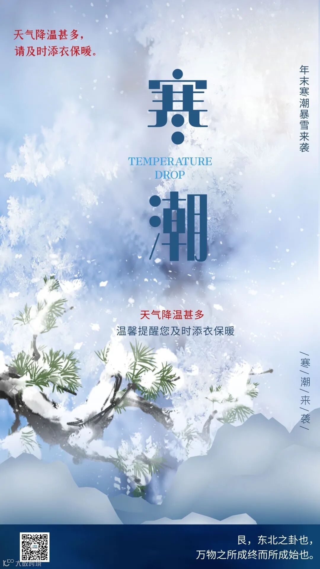 1、人员要注意添衣保暖;在生产上做好对大风降温天气的防御准备;