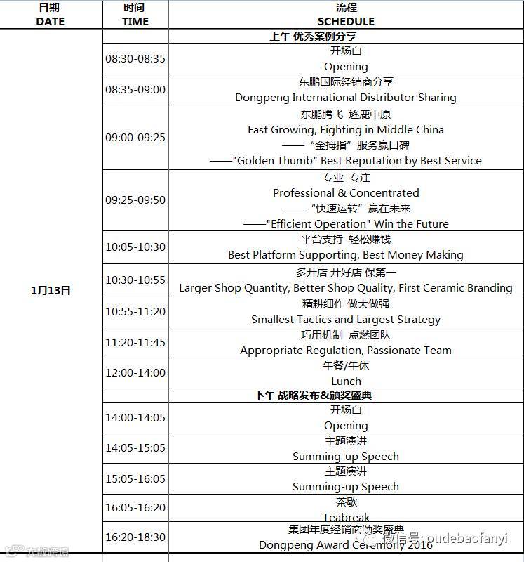 本次活动是东鹏集团各大地区对去年的总结及案例分享,并发布新一年的战略计划,流程如下: