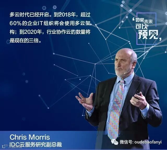 Chris Morris的这番话指的是传统云计算难以适应当今业务需求,多云时代已经开启。他预测:到2018年,超过60%的企业IT组织将会使用多云架构;到2020年,行业协作云的数量将是现在的三倍。