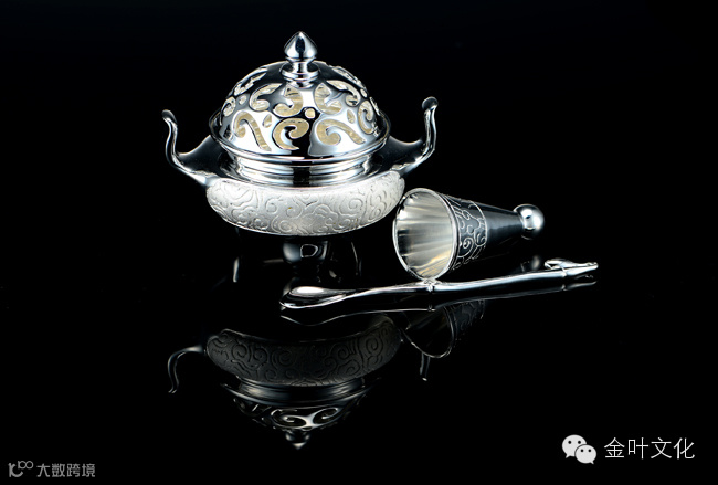 金叶文化出品「如意禅香」银炉,参照古代皇家香炉造型并融合现代工艺制作。复古三足鼎型庄重典雅,通体装饰镂空、线雕如意纹案,收腹扩顶,小巧峥嵘,方便填香,艺术性与实用性相得益彰。纯银工艺与经典造型的古今结合,弘扬中国千年传统香道精髓,为其倾注了独具魅力的文化收藏价值。