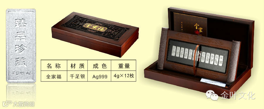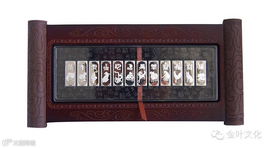 金叶文化出品「全家福十二生肖银条」,由十二枚各具特色的银条组成,生肖动物灵动活泼、富于神韵,别具魅力,同时配以寓意吉祥的窗棂纹饰,古朴典雅,凸显厚重吉祥的生肖文化。此全家福银条乃收藏送礼之佳品。