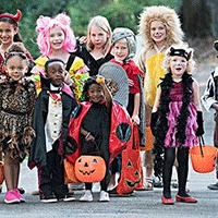 万圣节的服装起源于恶作剧,也要求大人带孩子一起出门(一般是大人驾车停在路边,小孩去敲门讨糖trick or treat)。大人应该要求孩子只许去门口有节日布置的并点了灯的人家,否则不许打扰。另外讨糖过程中必须始终站在大门口等待,不许进屋,讨回的糖也要交给大人检查后才许吃。对接待孩子的人家也要求不给自家制作的食品,也不给未包装的食品。