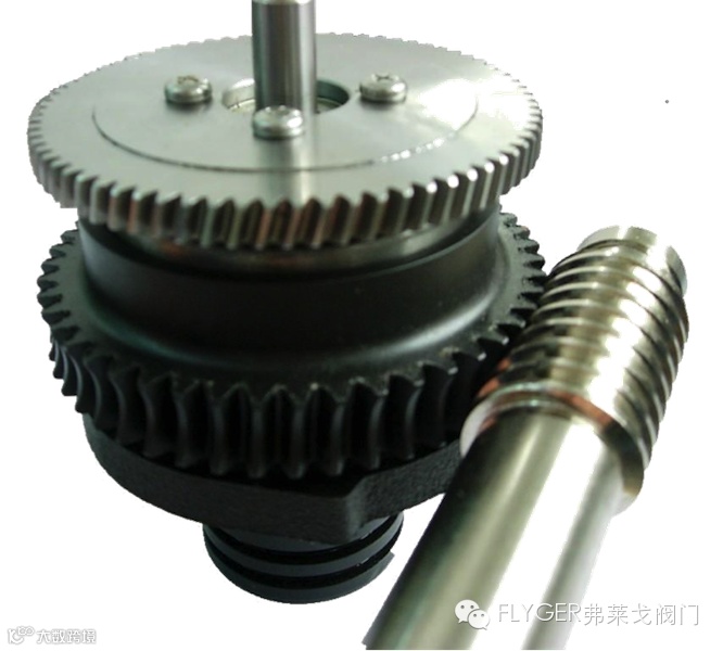 1)手动时,由手轮转动手动蜗杆,手动蜗杆带动蜗轮的旋转。通过行星轮的啮合,使输出内齿轮和蜗轮保持同步旋转,进而带动阀门的开闭。
