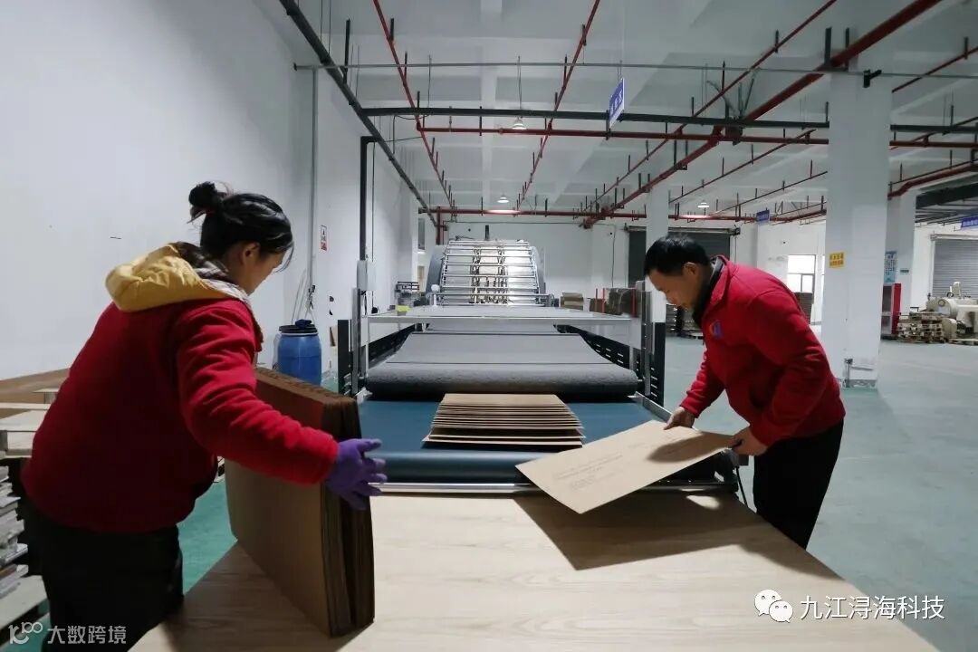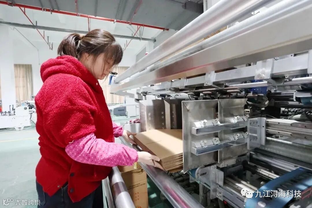 近日,在湖口高新技术产业园区内的九江浔海科技有限公司车间里,工人们正在纸板模切、纸箱成型等生产线上加班加点赶制订单。