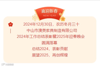 2025年,为了我们共同的目标,我们将继续沿着公司领导的战略方针戒骄戒躁,稳步前进。大家共同举起酒杯,祝愿澳美家具的明天更加美好!