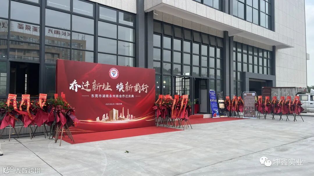 2023年8月20日下午15:30,东莞市湖南永州商会在坤鑫~中堂科技园,举办主题为“乔迁新址、焕新前行”乔迁庆典。