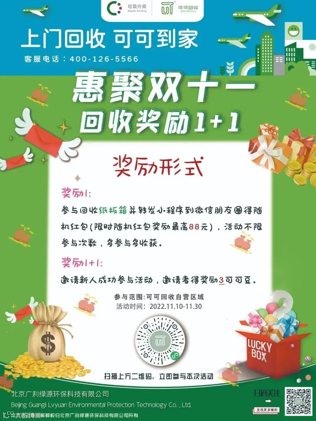 11月10日起,参与活动,您每交投给“可可”的纸板箱,