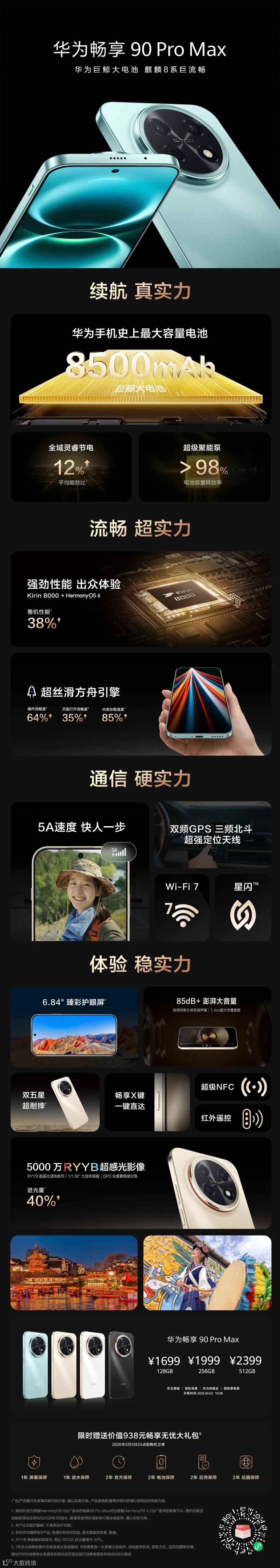当松山湖的生产线与“鸿蒙之城”的时代浪潮交汇,“东莞制造”再一次以普惠科技的姿态,走进市民掌心。3月17日,东莞与华为正式签署全面深化战略合作协议,“鸿蒙之城”建设正式启航; 3月23日 ,华为全新畅享90 Pro Max 官宣亮相——这款扎根东莞智造、搭载麒麟8000与鸿蒙6的千元旗舰,不仅是华为“巨鲸长续航”的新标杆,更是二十余年莞企与华为双向奔赴的鲜活注脚。 01二十年深耕:华为与东莞的共生之路 2005年,聚信科技落子松山湖,华为与东莞的缘分自此开篇;2009年,华为南方工厂正式投产,终端制造的根基在此筑牢;2019年,华为开发者大会(HDC.Together)在东莞举办,鸿蒙系统正式诞生,让这片制造沃土成为中国操作系统的起点。从Pura系列折叠屏的“阔折叠”突破,到畅享系列的普惠升级,二十余年间,华为在莞完成了从研发、制造到生态运营的全链条布局:2023年鸿蒙4发布时,生态设备已达7亿台;2024年“纯血”鸿蒙开启公测,东莞始终是鸿蒙技术迭代与场景落地的核心阵地。如今“鸿蒙之城”的签约,正是这份深厚羁绊的升华——东莞以制造优势为基,华为以鸿蒙技术为翼,共同书写“制造+创新”的新答卷。 02东莞智造的温度:畅享90 Pro Max的普惠实践 作为“鸿蒙之城”建设周期内的重磅普惠机型,畅享90 Pro Max是“东莞制造”与鸿蒙生态的完美融合,让旗舰级体验不再遥不可及:精密工艺延续松山湖生产线的严苛标准,采用旗舰同款利落直屏与“星环”对称设计,将高端质感带入千元价位。性能协同麒麟8000处理器与鸿蒙6系统深度适配,软硬件协同优化实现多任务流畅流转,应用启动速度显著提升,长期使用仍保持丝滑体验。巨鲸续航8500mAh超大电池较前代提升30%,彻底告别续航焦虑,重度使用全天无忧,轻量场景可支撑2-3天,完美适配东莞市民通勤、创业、生活的多元节奏。鸿蒙关怀鸿蒙6内置诈骗电话识别、远程协助长辈挂断诈骗 电话 等功能,搭配关怀模式放大字体图标,让老年群体轻松上手;机身左侧畅享X键一键直达乘车码、支付码、智能遥控,让数字生活更便捷。它不再是冰冷的科技产品,而是“东莞制造”向市民递出的一张有温度的智慧生活入场券。 03鸿蒙之城:从生产线到生活圈的数字跃迁 “鸿蒙之城”的核心,是让鸿蒙技术从实验室走向生产线、走进生活圈,让数字红利惠及每一个人。畅享90 Pro Max的推出,正是这一目标的关键实践:产业赋能巩固松山湖作为华为核心生产基地的地位,带动上下游供应链协同升级,为东莞“8+8+4”现代化产业体系注入数字动能,让“东莞制造”在全球智能终端领域更具话语权。民生普惠以亲民定价让更多市民用上原生鸿蒙设备,感受隐私保护、长辈关怀、场景快捷操作等生态优势,让“鸿蒙之城”的建设成果可感可知。生态扎根与Pura系列、Mate系列、nova系列等机型形成梯度覆盖,为“鸿蒙之城”筑牢用户基础,推动更多鸿蒙应用从“实验室”走向“生活圈”,加速构建万物互联的数字未来。 从松山湖的车间到市民的掌心,从鸿蒙系统的诞生到“鸿蒙之城”的启航,华为与东莞的每一次携手,都在让“制造”向“智造”进阶,让“科技”向“生活”贴近。畅享90 Pro Max的到来,不仅是华为普惠战略的落地,更是“东莞制造”向世界展示的新名片——智慧,本就该触手可及。