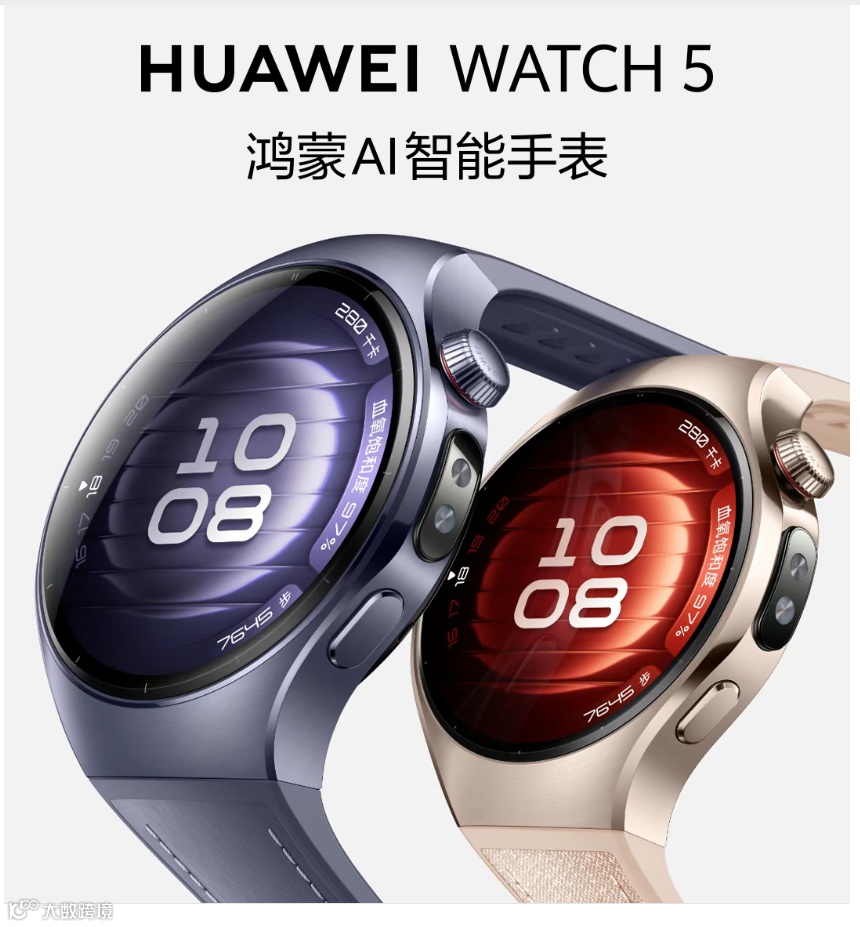 华为 WATCH 5 是华为首款鸿蒙 AI 智能手表,采用全新 X-TAP 智感窗技术,支持指尖血氧检测、微体检等健康功能,搭载 HarmonyOS 5.1 系统,具备独立通信能力,支持 eSIM 一号双终端及独立号码功能,同时拥有 100+ 运动模式和全场景互联体验。