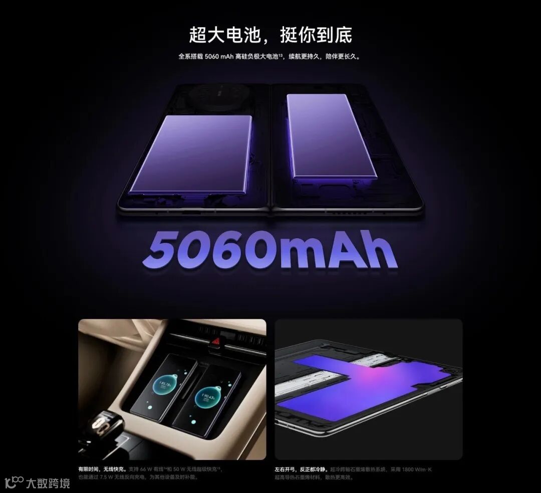 5060mAh硅碳负极电池+66W快充:30分钟充至85%,支持50W无线快充,告别电量焦虑。