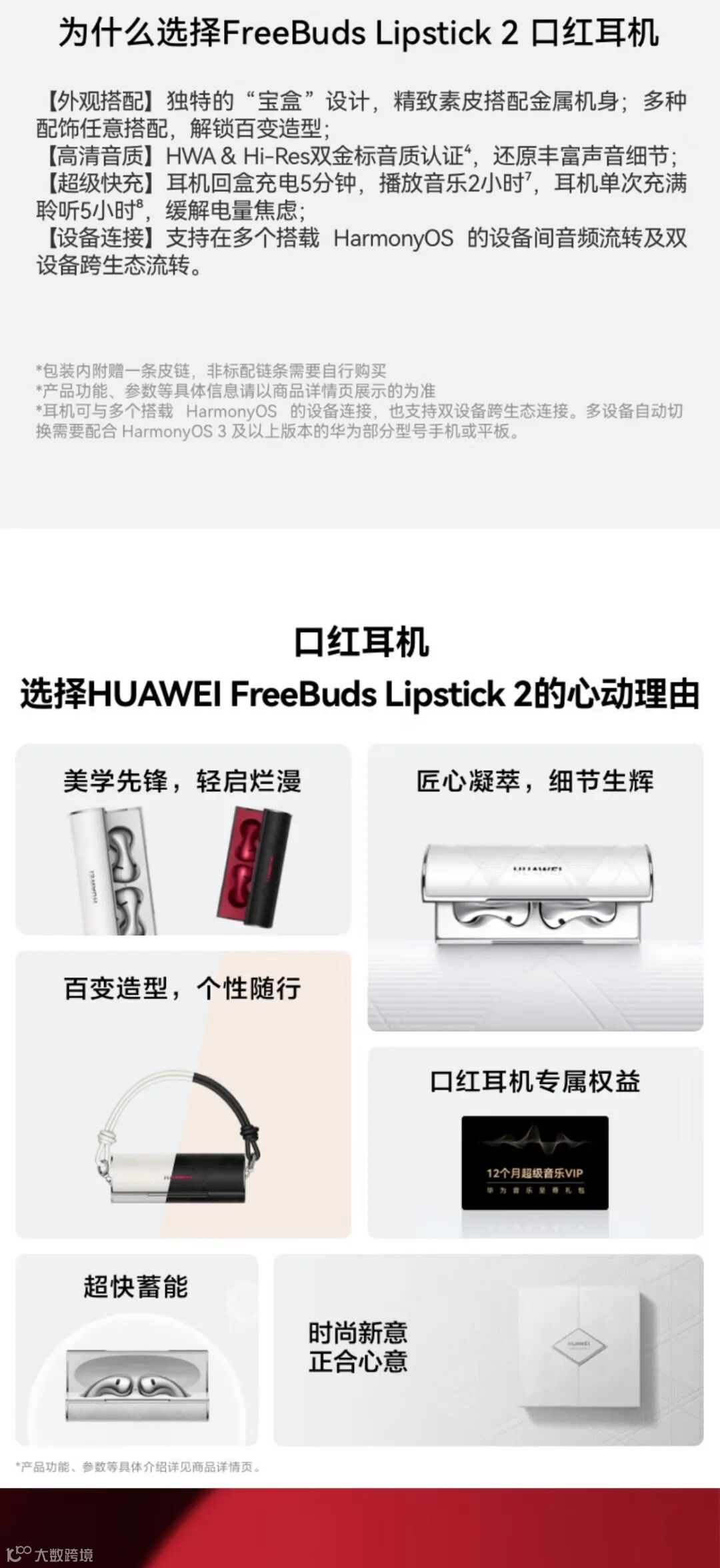 一张图带你了解#华为FreeBuds# Lipstick 2 口红耳机。