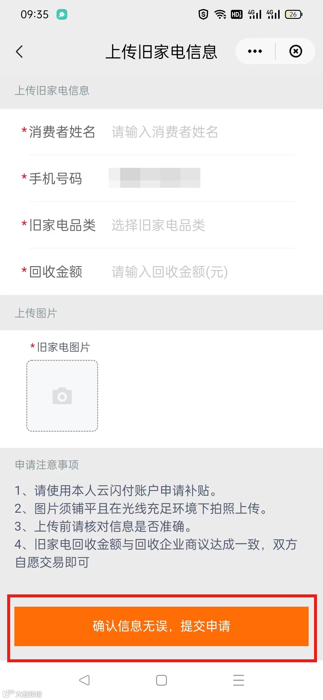 2.消费者通过活动页面上传所交售的旧家电信息:消费者姓名、手机号码、旧家电品类、旧家电照片和旧家电回收价格。
