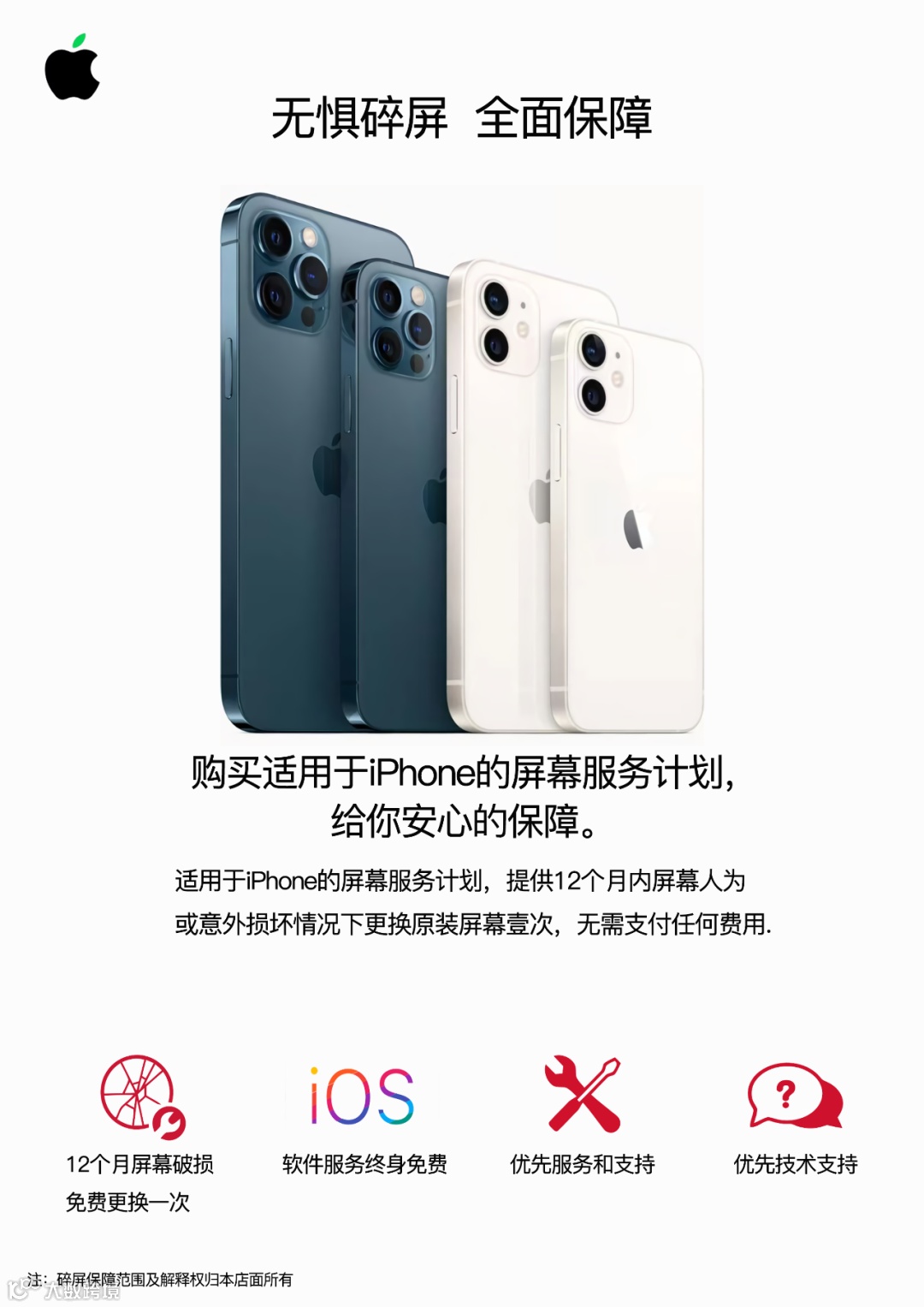 *购买适用于iPhone、iPad的屏幕服务计划,屏幕意外损坏免费更换