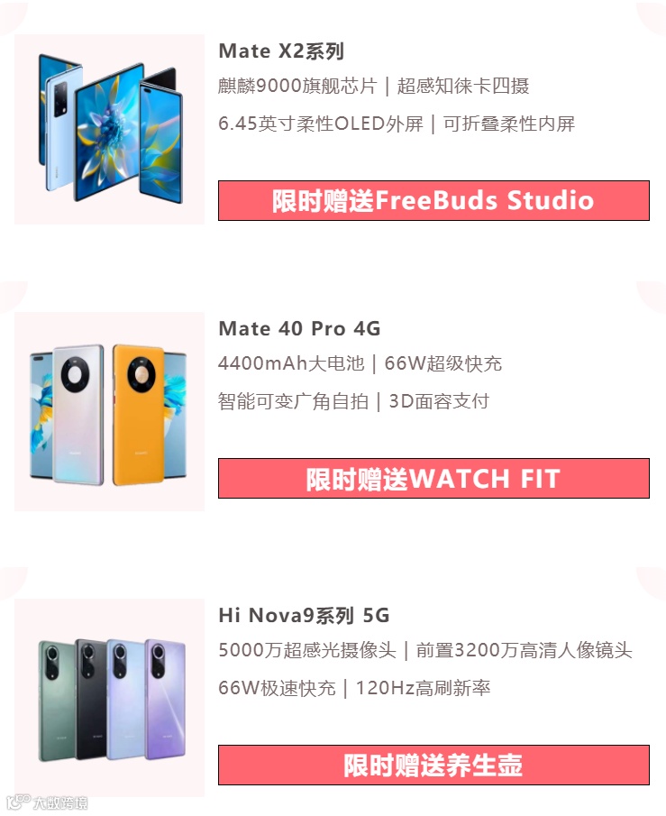 WATCH FIT系列、手环B6、WATCH GT2 Pro系列、儿童手表4X、FreeBuds4
