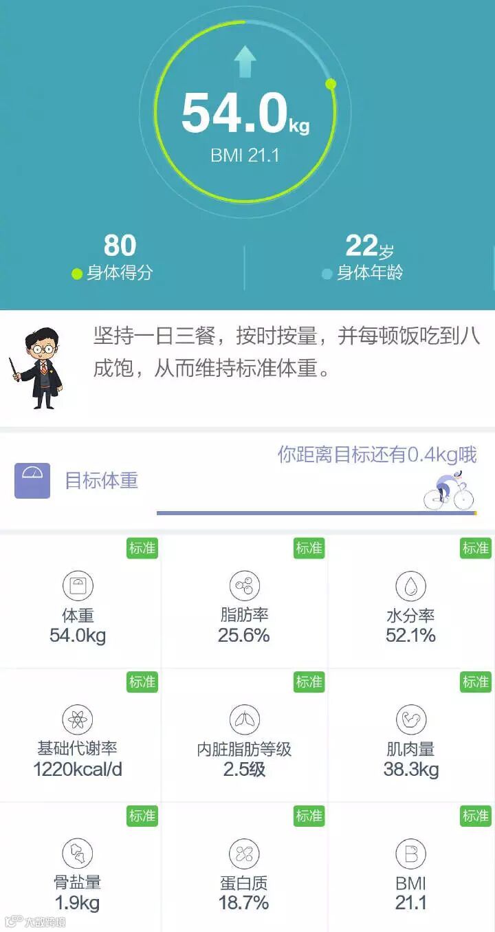 (各项检测都标准,而且身体年龄比自己实际年龄小,这就是坚持运动的结果)