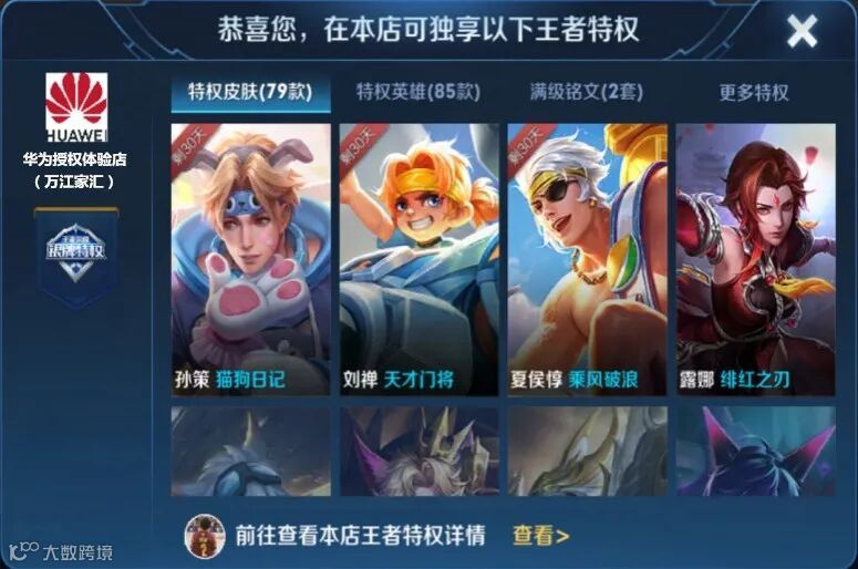 即日起到店扫码打开门店小程序,关注门店即可连接店内WiFi,然后立即享有专享的英雄和皮肤特权。(敲板砖!!!断开WiFi后,特权依旧可以保持两个小时)。
