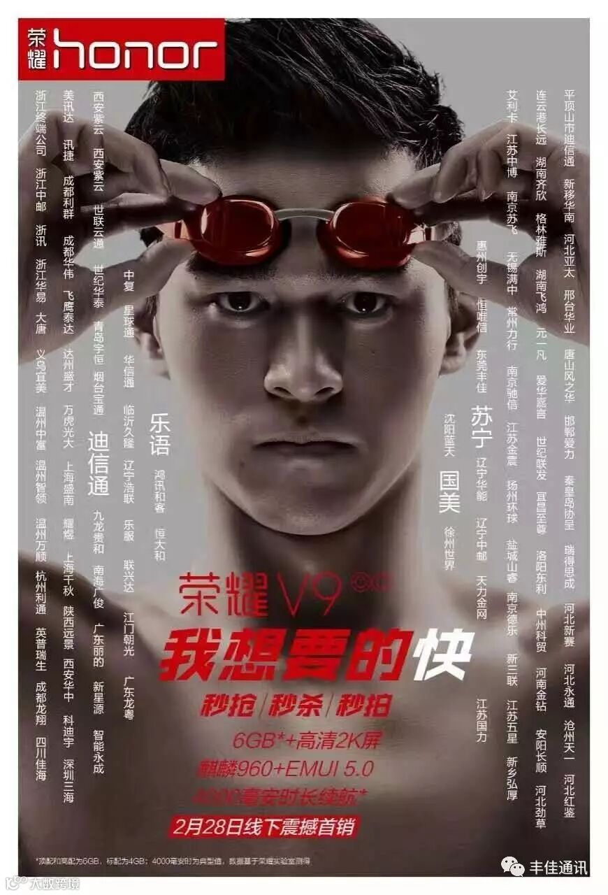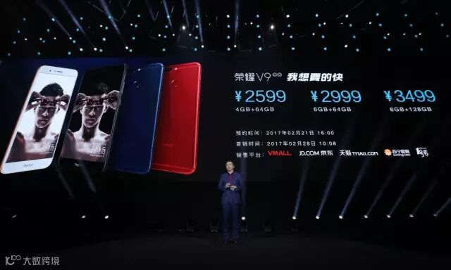 2月21日下午14:30,华为荣耀在北京举办新品发布会,正式推出新旗舰荣耀V9及荣耀8青春版。荣耀V9邀请了奥运游泳冠军孙杨做形象代言,主打速度,同时配备徕卡双摄。精致外观,黑白+彩色双1200万像素平行镜头,5.7英寸2K屏,搭载麒麟960芯片,4000mAh电池长久续航,EMUI 5.0操作系统,我想要的快!荣耀V9拥有4GB+64GB全网通标配版,6GB+64GB全网通高配版和6GB+128GB全网通尊享版三款,三个版本售价分别为2599元、2999元和3499元,有铂光金、幻夜黑、魅焰红、极光蓝四种颜色,其中仅6GB+128GB全网通尊享版有魅焰红版。