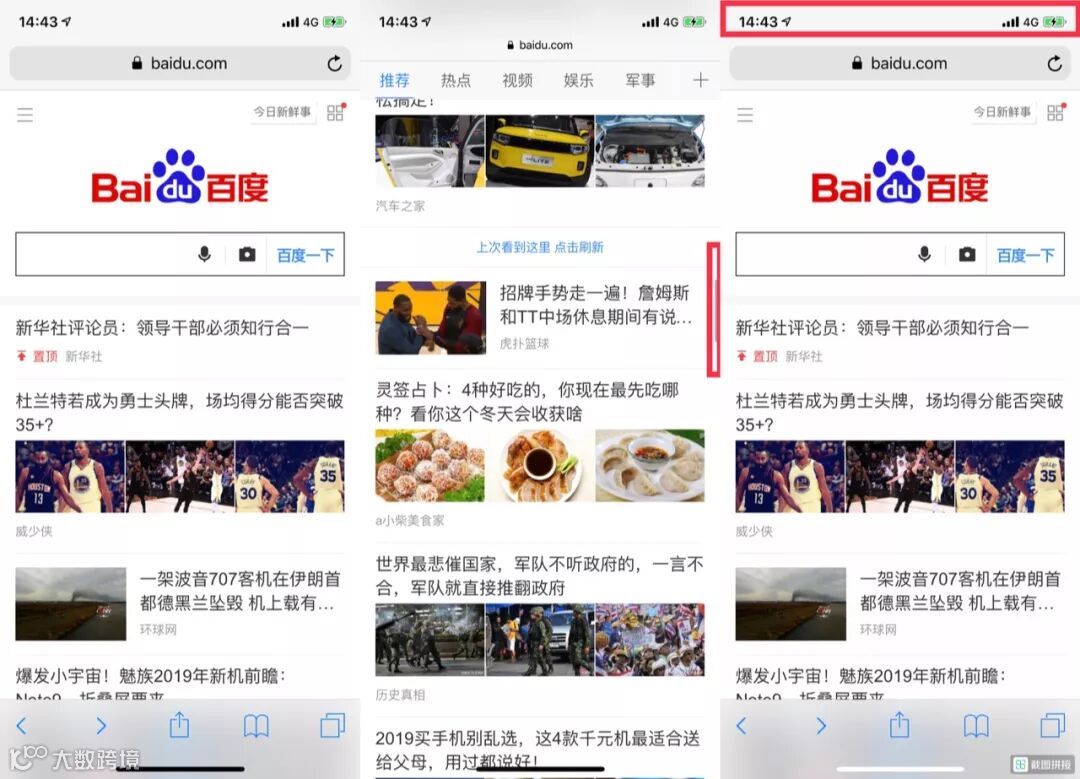 当你在阅读长篇文章或者是新闻时,想必您还在为回到顶部(最开始地方)发愁,可iPhone上如何快速回到网页顶部呢?难道你还在用力地向下拨弄屏幕或小小的滚动条?no no no ......其实点击iPhone状态栏便可快速回到网页顶部啦。