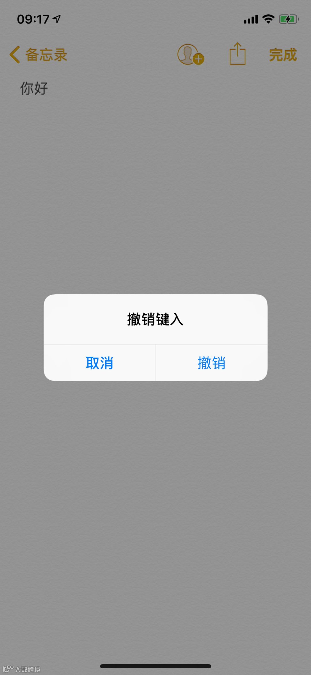 这个功能想必大多苹果用户应该见到过,又或者已经比较熟悉,当你在输入过程中不小心打错字,导致文本内容不协调,这个时候你还在傻傻的一个字一个字的去删除吗?no no no ,只需摇一摇你手中的iPhone,屏幕就会显示“撤销键入”的窗口,点击“撤销”就可以把整段乱掉的文字给删除掉。(如下图所示)