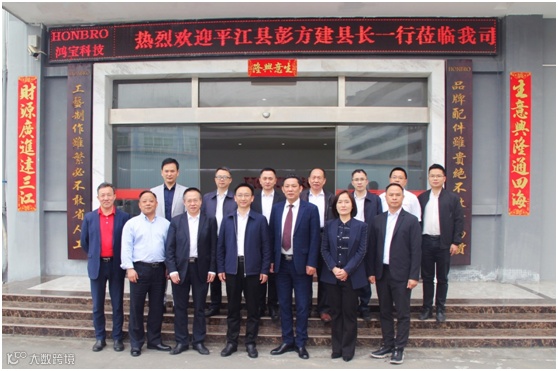 2023年3月14日上午,平江县县委副书记县长彭方建,县委常委副县长仇文娟等县政府领导在平江商会会长吴武强、监事长李光辉、秘书长刘志文等几位同志的陪同下来到我公司广东鸿宝科技有限公司参观考察,我司以董事长喻世民、副总经理喻全民、监事喻松柏、总经办主任冯伟林等组成高管团队,另特邀平江教育基金会理事长彭隽及其他核心成员刘占胜同志、徐稍然同志、黄羽平同志共同进行了热情接待。