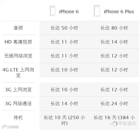 此外,在用户最为关心的续航能力方面,两款iPhone也有所提升。iPhone 6的通话时间从iPhone 5s的40小时提升到50小时,iPhone 6 Plus的通话时间更是从40小时显著提升到80小时。