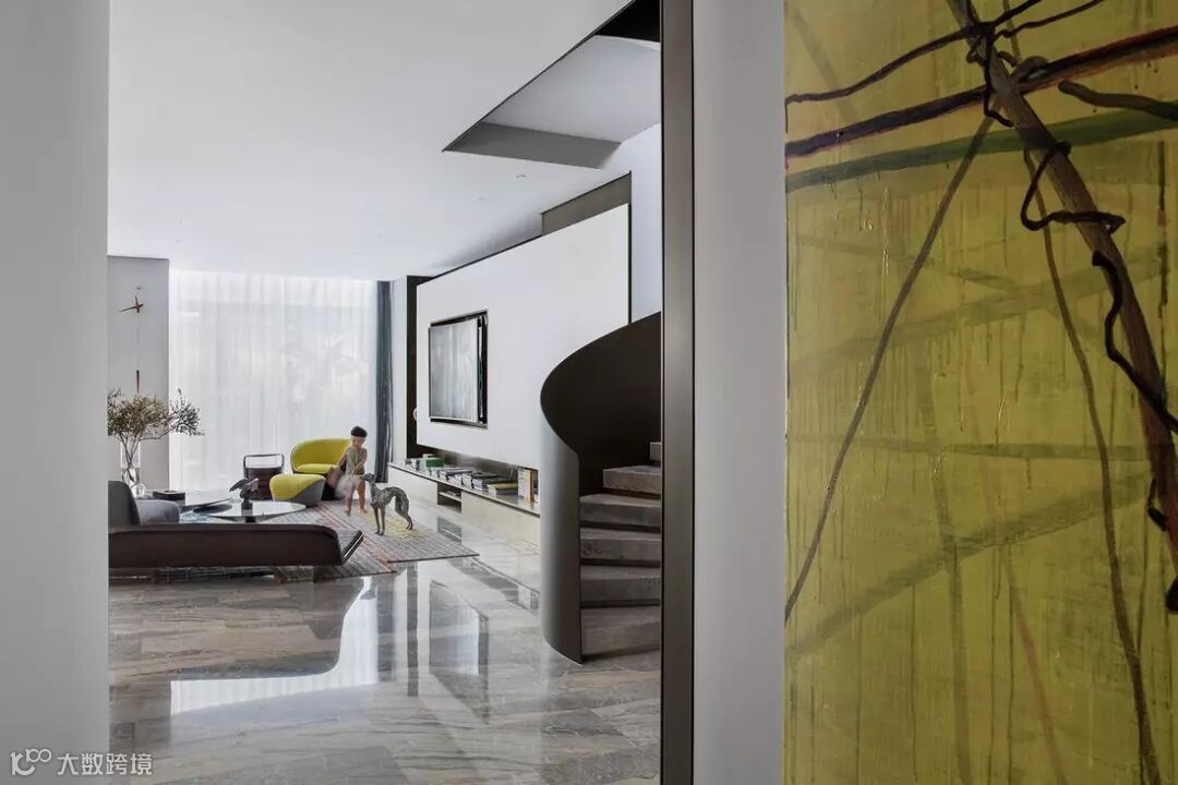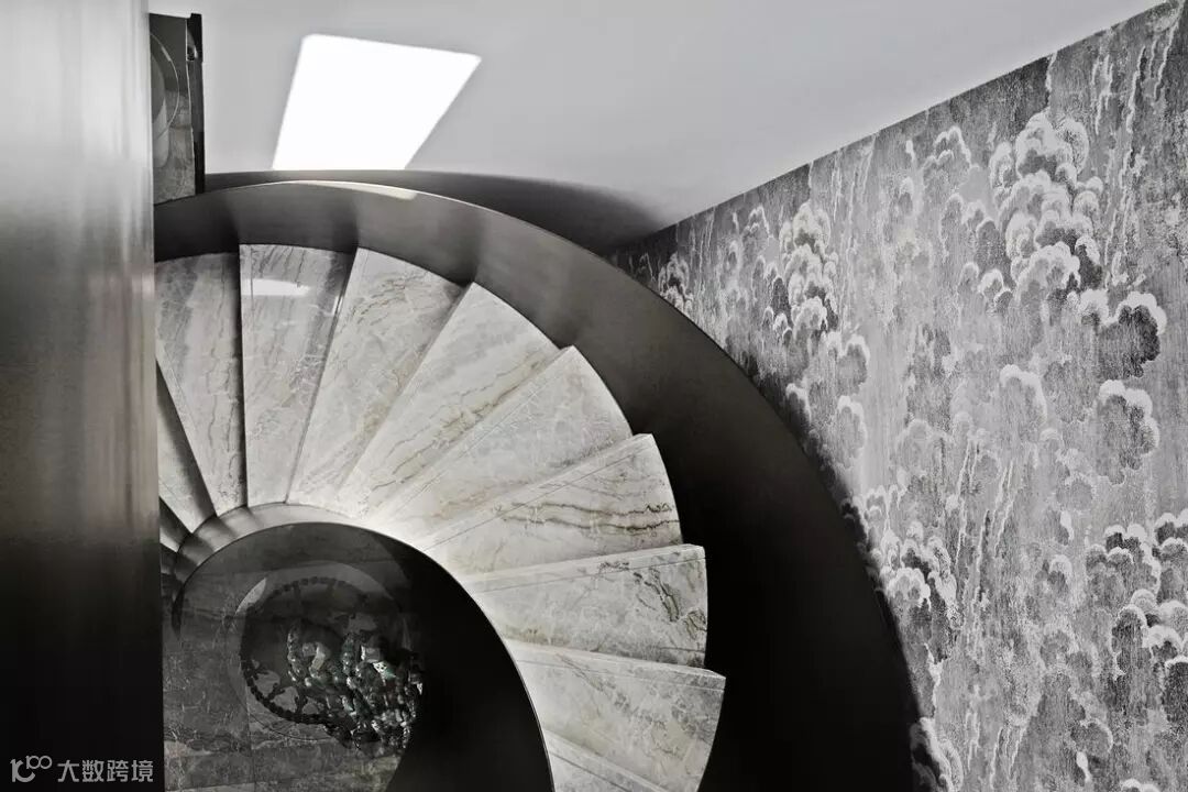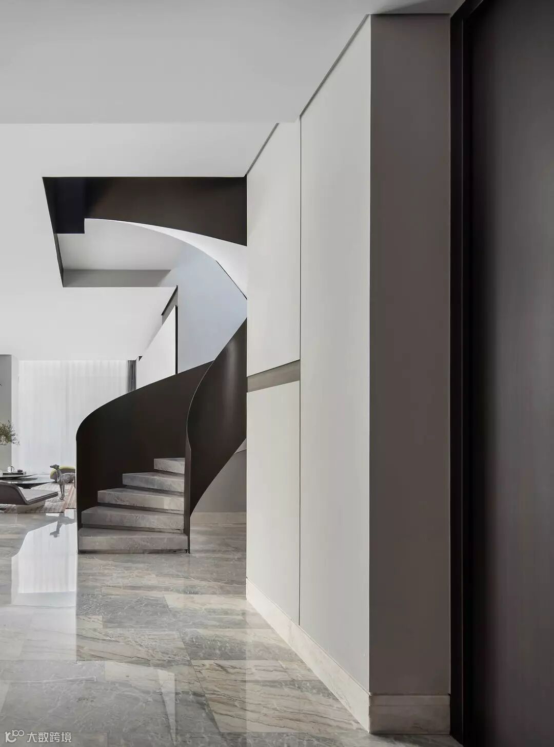 楼梯以旋转向上的姿态存在于空间之中,连接公共空间与二层。