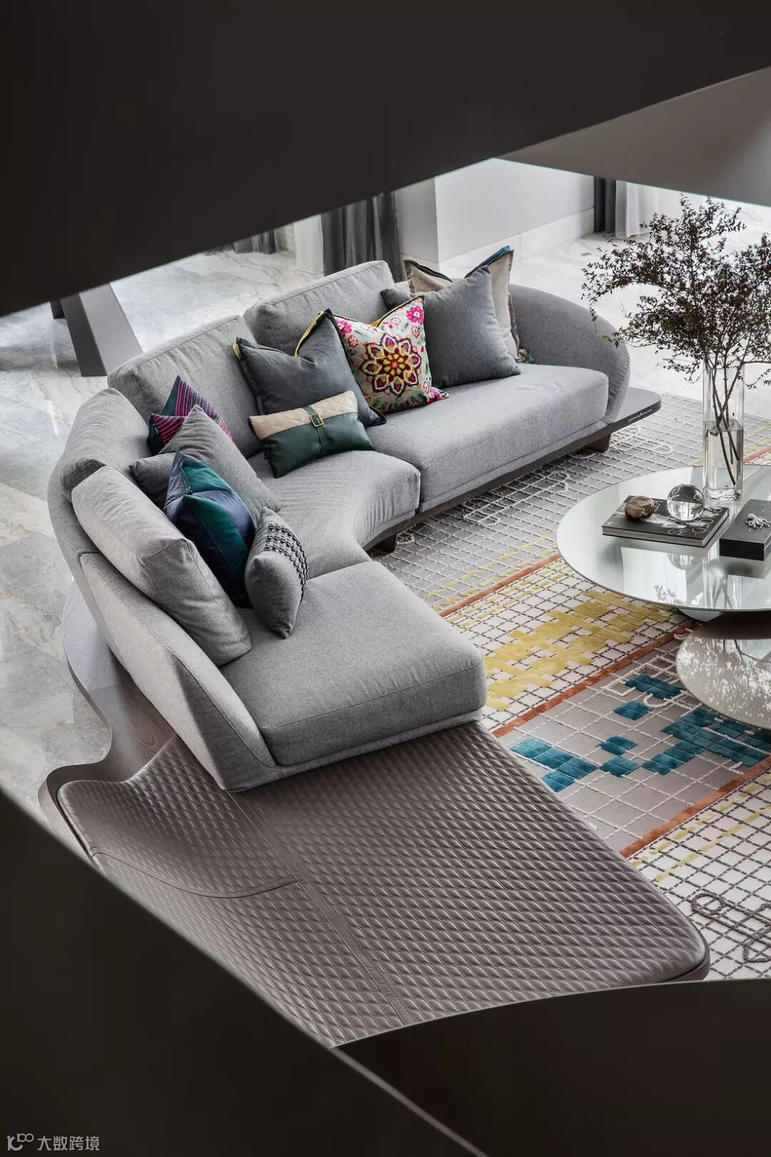一楼的客厅是全家人最喜欢的地方,摆放着的沙发出自意大利reflex,高低错落的造型,更便于亲子互动,也展示出了温婉平和的美。
