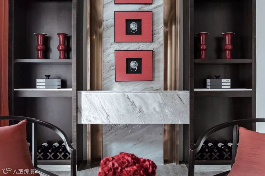以大气简约的造型,利用中国红、古铜、黑色木纹营造出历史悠远的中国文化底蕴,使人感受到世代承启、沉淀、创新的博大精深。
