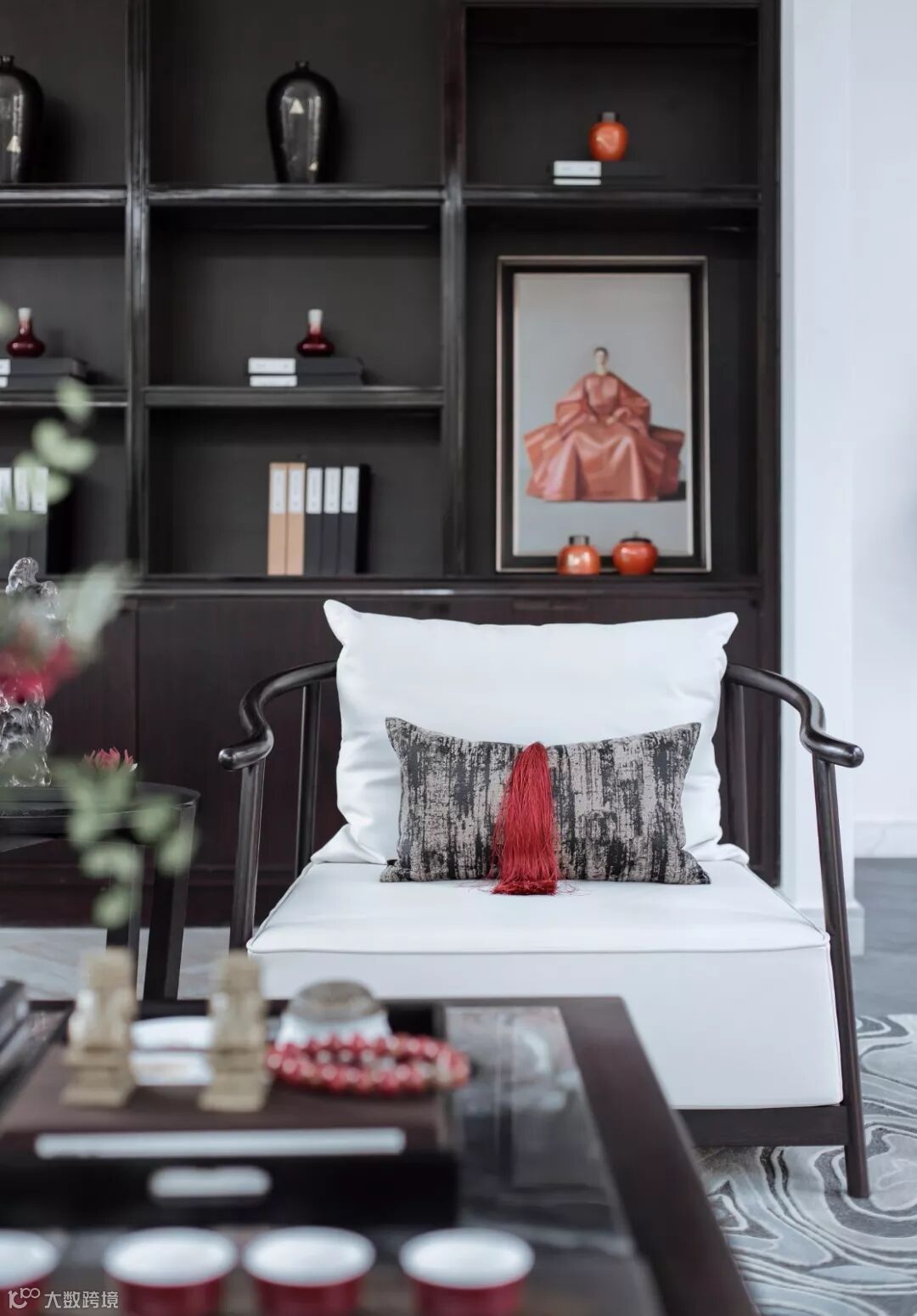 软饰方面采用山水元素以及顽石趣味,精致老物件和茶歇带来时空的宁静与恬静,空间内外的人如同时空交互出入在古今。