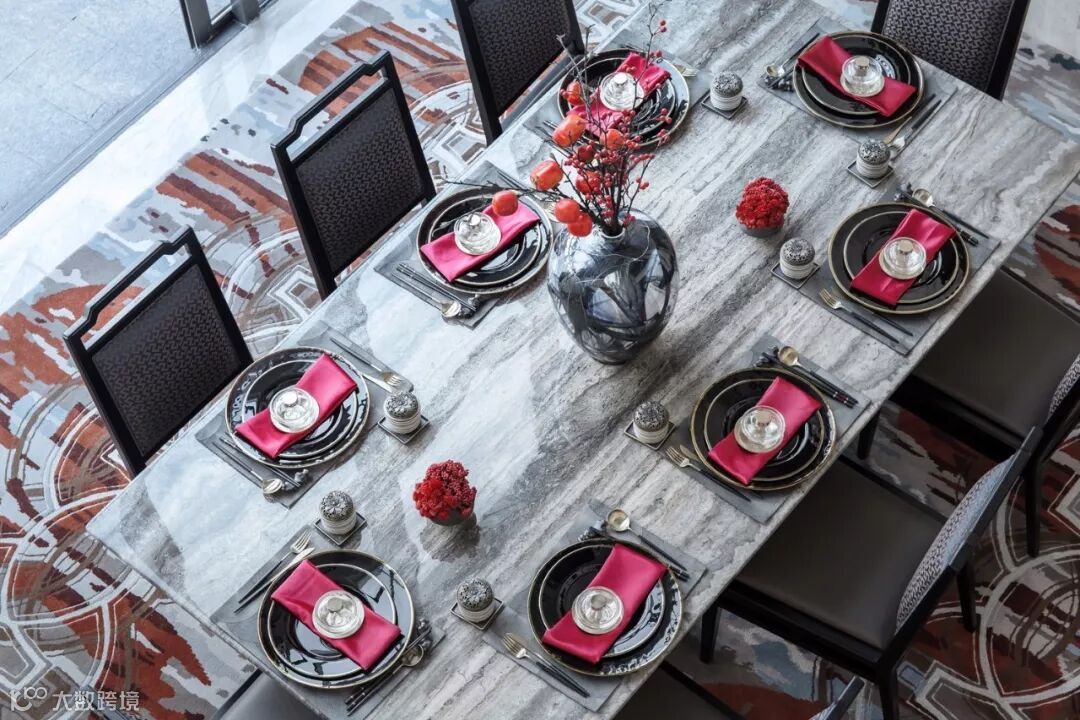 步入餐厅强烈的视觉感受,尊贵而热烈的色彩,庄重典雅的气韵流动其间,色彩撞击,洋溢着激扬的复古精神却不显沉闷。