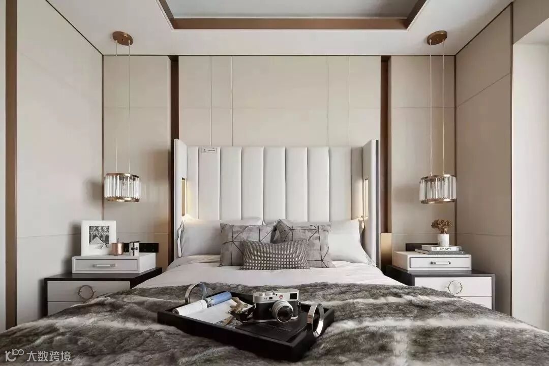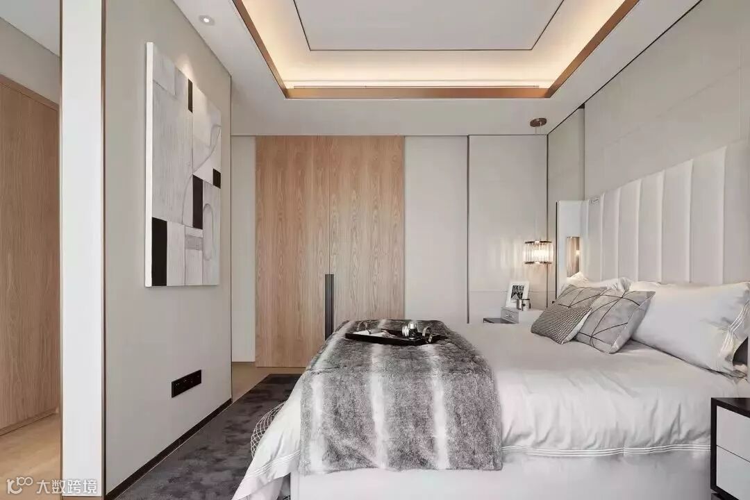 主卧室的空间是按奢华五星级酒店套房的标准量身定做的,独立的大尺寸衣帽间、书房、卫生间一应俱全,且套房内的各个空间又可以灵活地分隔或合并使用,满足男女主人不同时段的生活交叉空间。