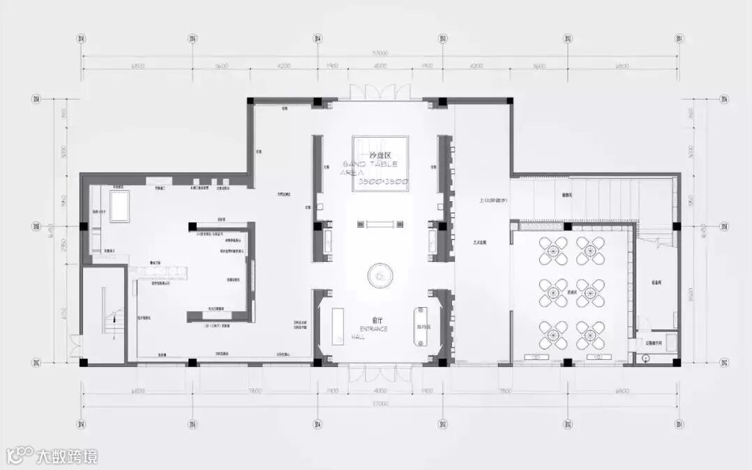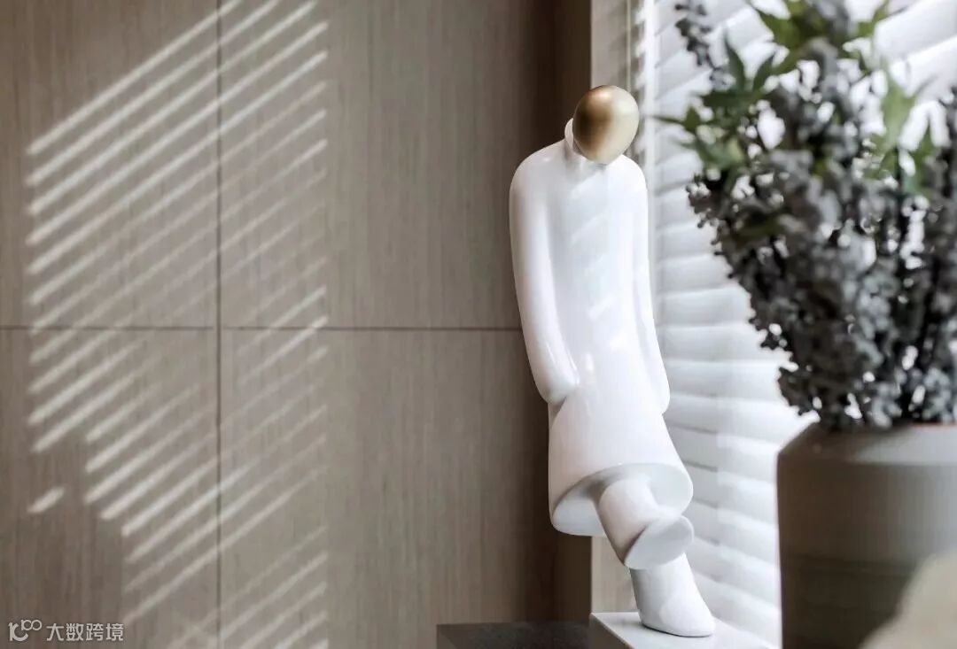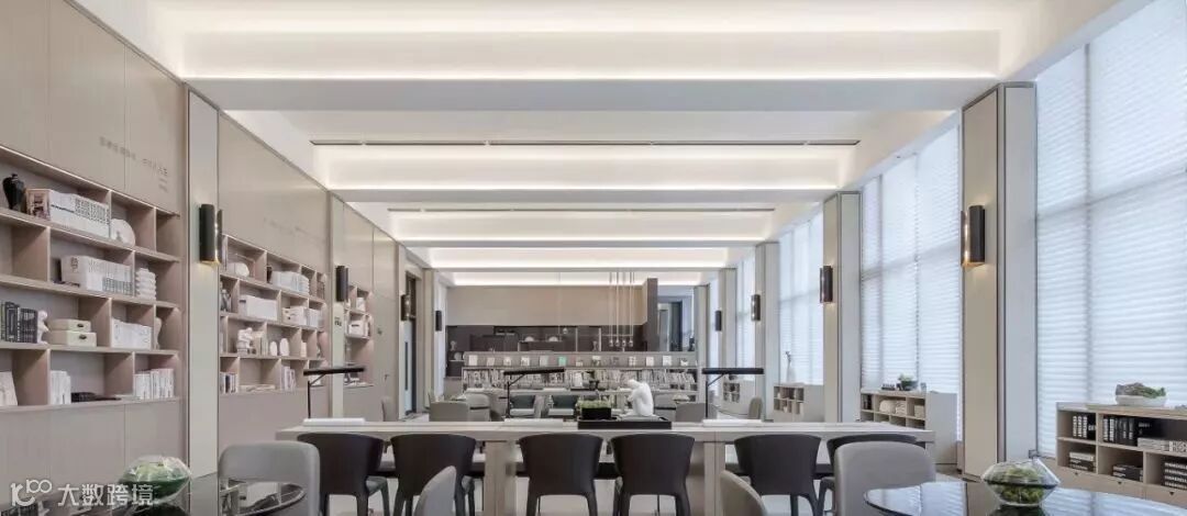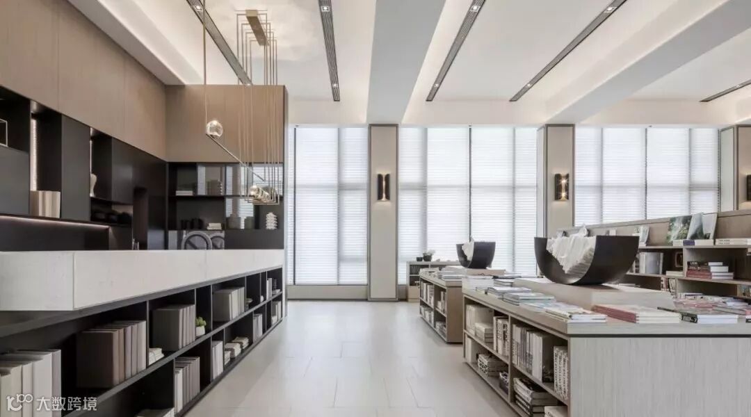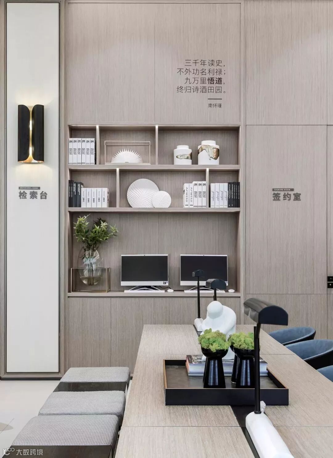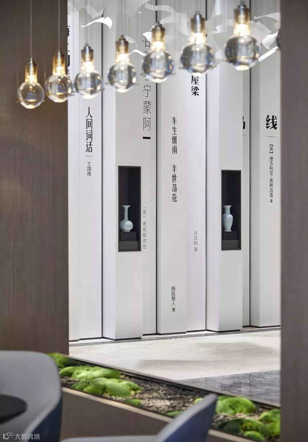 以博古架作为空间分割线,移步易景,有中式的山水写意,也有西式的抽象几何。
