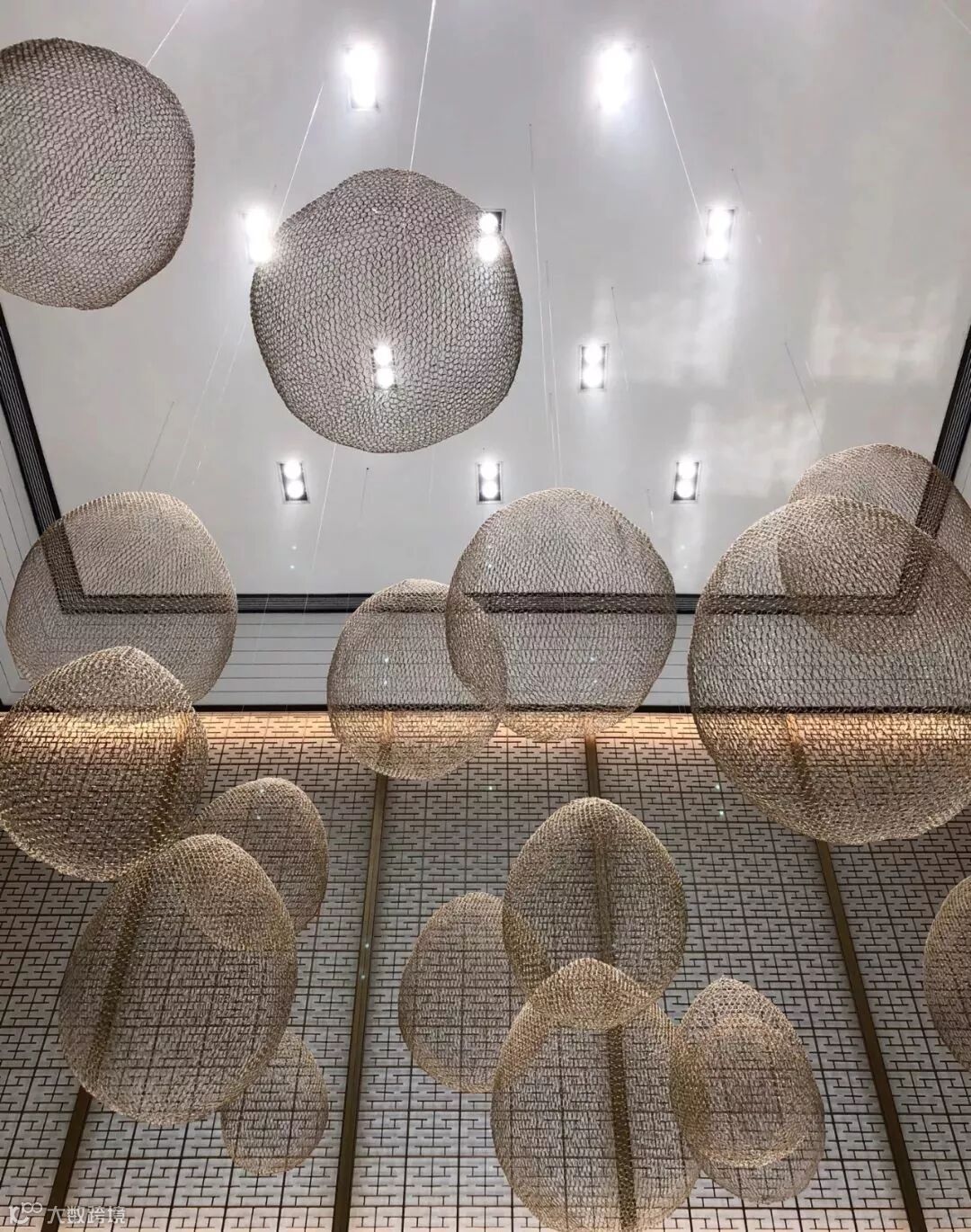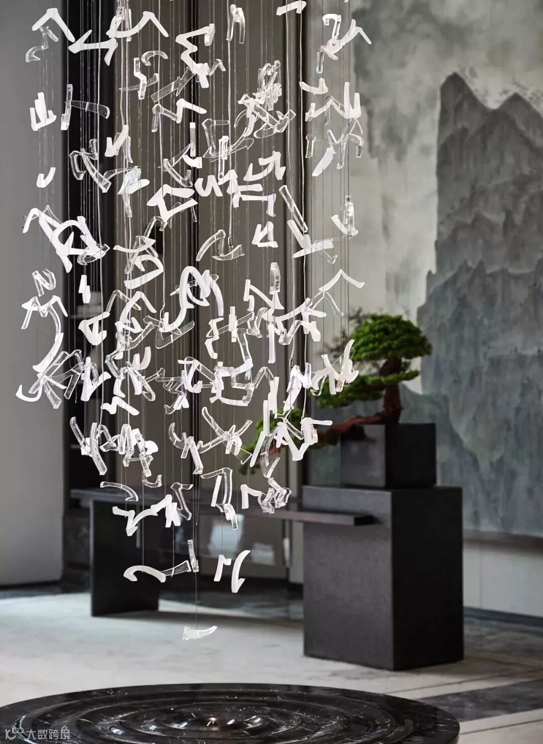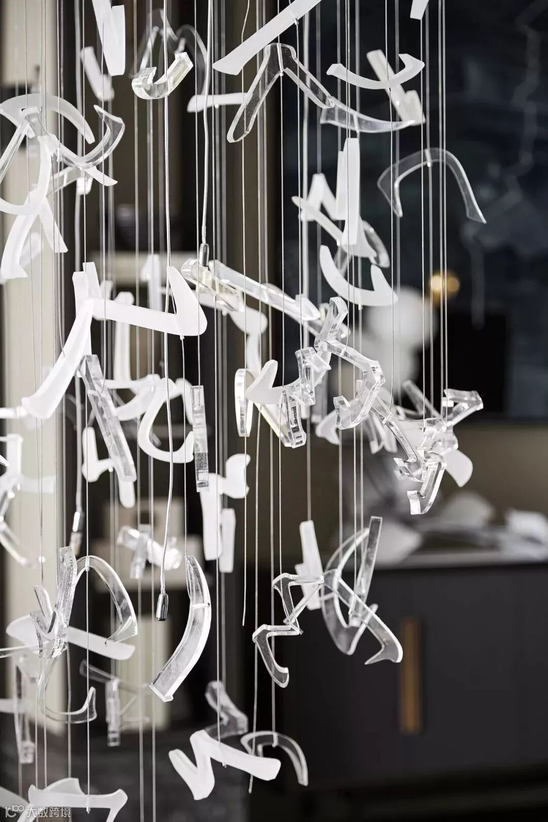 同色不规则金属球悬于半空,半透明的立体感打破中式的对称的厚重感。